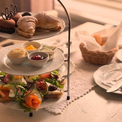 Afternoon tea går att beställa oktober till april. Vi gör ett uppehåll under vår – sommar.